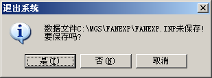 退出《MGS通风机试验数据处理系统》。如当前试验数据文件未保存,则显示[退出系统]对话框。