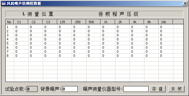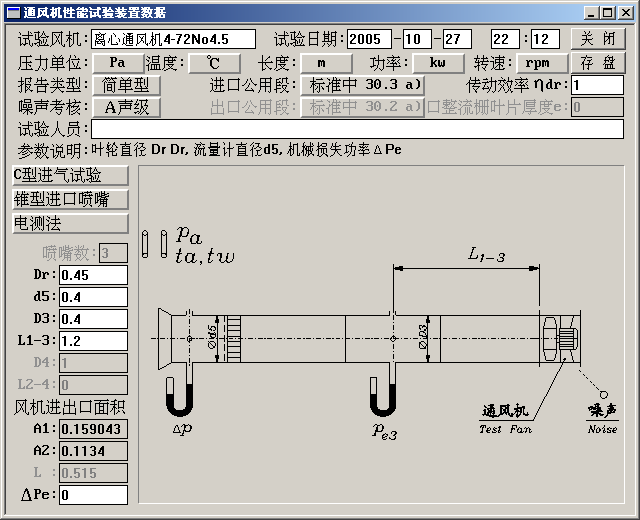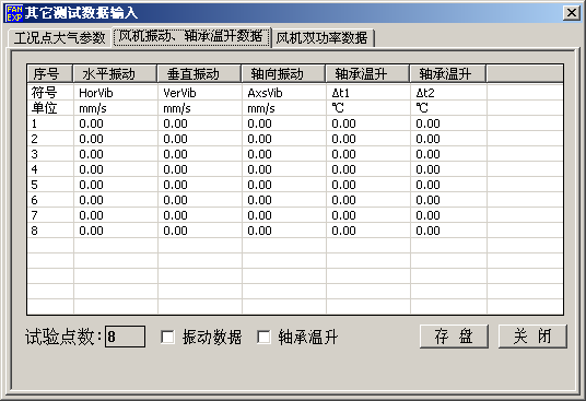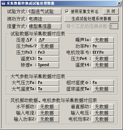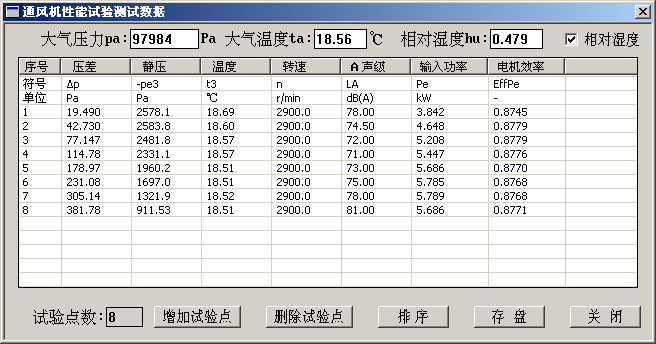 显示[通风机性能试验测试数据]对话框: