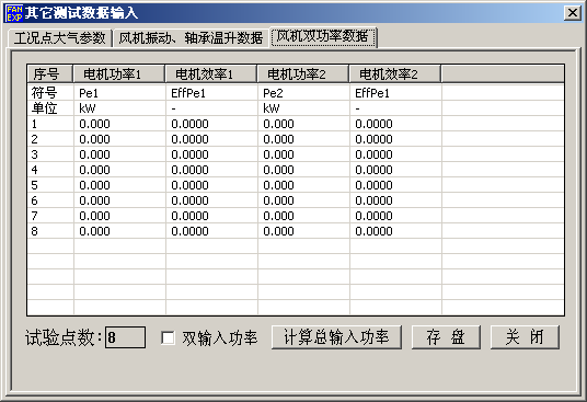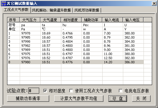 功能:用于输入或修改通风机性能试验测试数据。