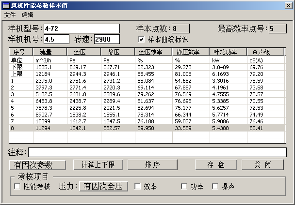 关闭通风机性能试验装置数据对话框。