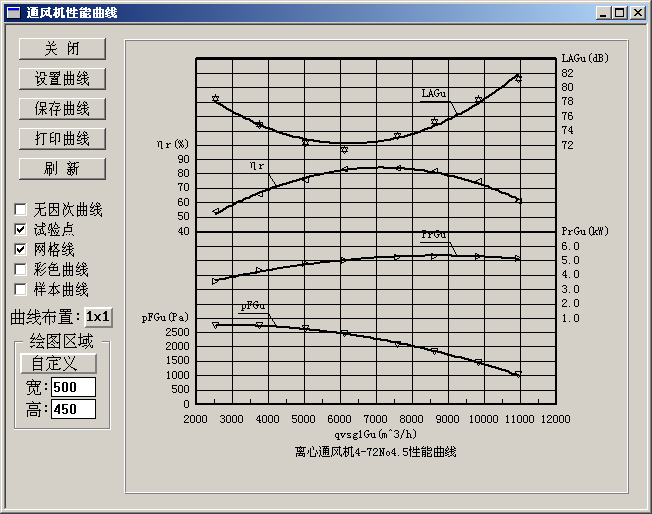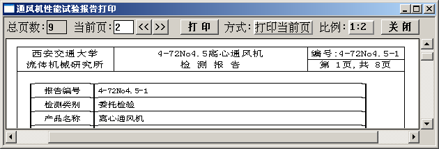 进入[通风机试验数据处理系统:打印报告]对话框,