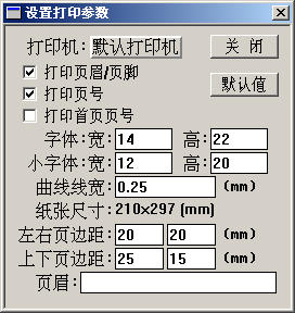 2.7 [曲线线宽]条目: 设置性能曲线打印是的线宽。