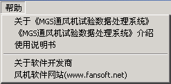 显示《MGS通风机试验数据处理系统》软件使用说明书。