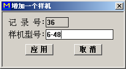 在[样机数据维护]对话框中单击[增加一个样机]按钮后,屏幕显示[增加一个样机]对话框,用户可从样机型号条目中输入新增样机的型号,按应用按钮。