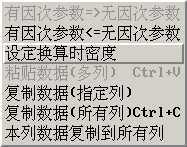性能参数应输入无因次参数;如果没有无因次参数,则可以输入有因参数,输完以后,应使用转换功能,将有因次参数转换为无因次参数。鼠标先选中一行数据,然后右击鼠标,选择转换。在转换前,必须先输入样机机号和试验转速。在默认条件下,转换是按密度为1.2进行的,如果不是,则先使用“设定换算时密度”功能设置转换密度。