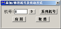 按钮:添加一个机号。单击本按钮后,显示”添加/修改机号及传动方式”对话框。