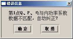 按钮:保存[样机无因次性能参数]。在存盘时,系统会检查输入数据的合理性。如发现不合理数据 ,则会出现“错误信息”提示对话框,让用户确认是否要自动纠正。其中:
