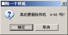 在”样机数据维护”对话框中,先在样机型号列表中选择一个风机型号,然后单击[删除一个样机]按钮,屏幕显示”删除一个样机”对话框,让用户确认是否真的要删除该样机。