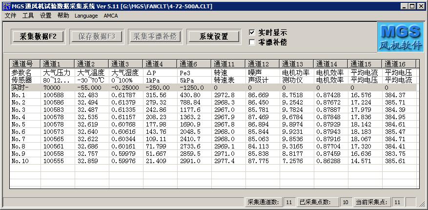 《MGS试验数据采集系统》软件主要功能: